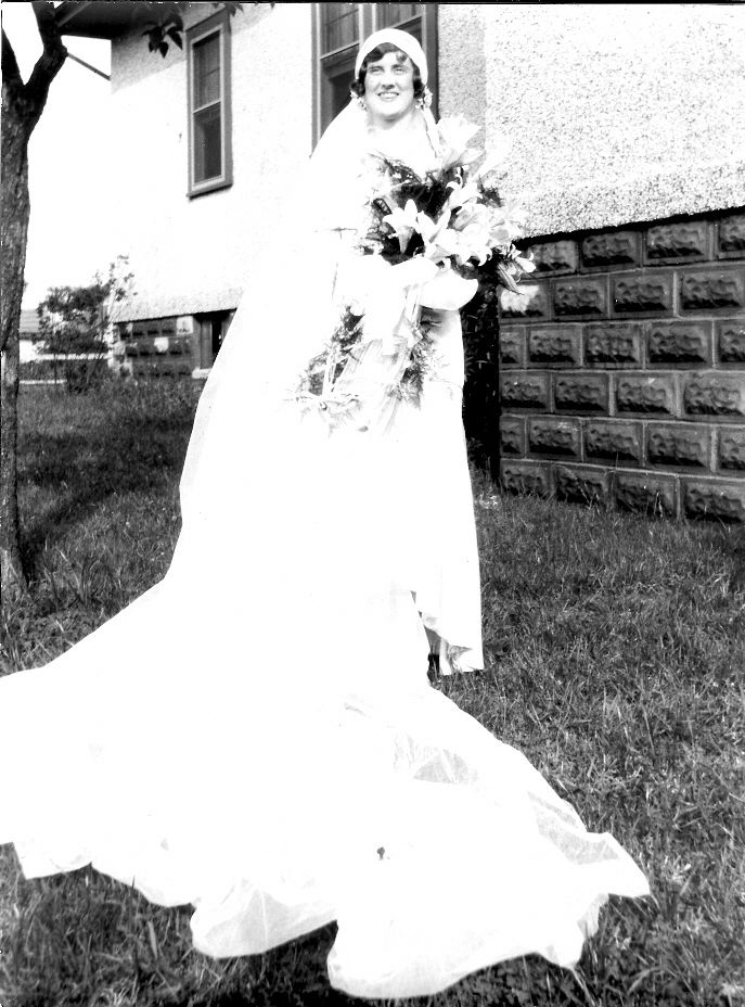 When the Historical Society received a 1930 wedding gown, we were allowed to copy this picture of the bride on her wedding day. Having as much information about a donated piece will make it easier for us and future generations to interpret the piece more fully.
